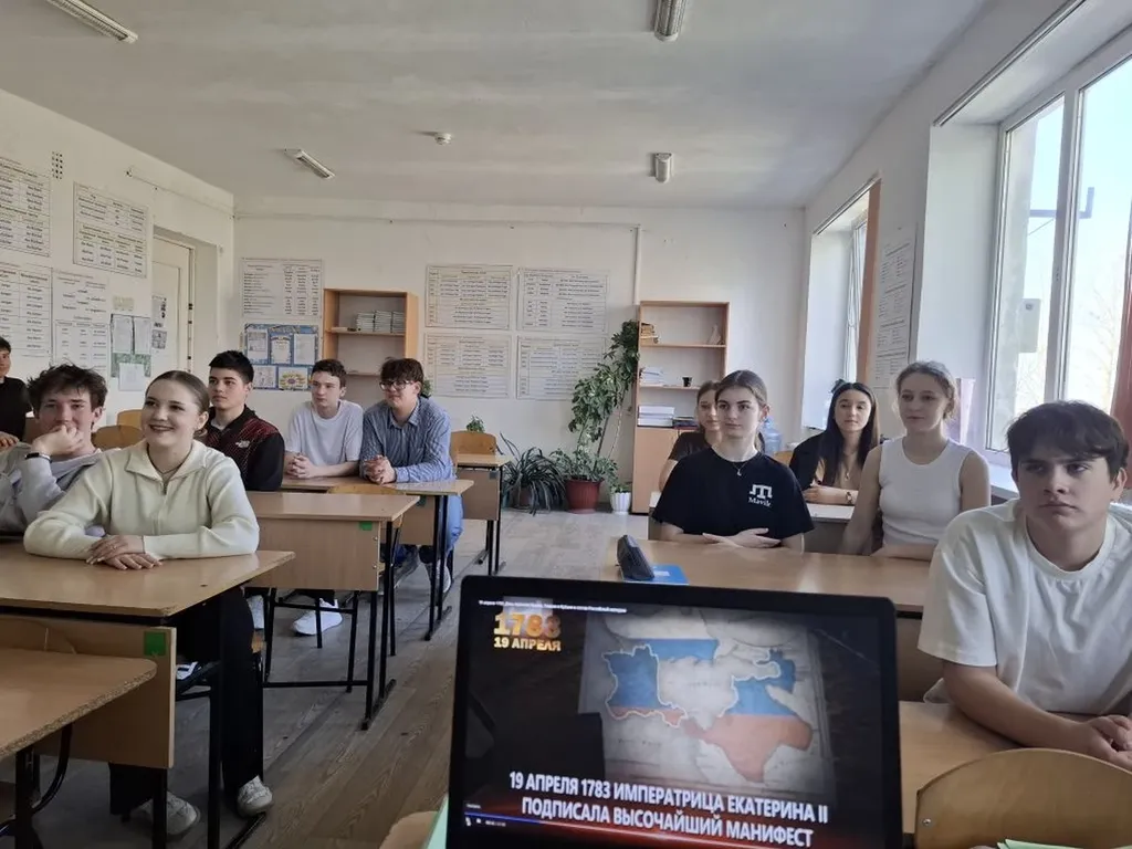 Ребята вместе с классными руководителями обсудили историческое значение этого события, его роль в укреплении южных границ государства и развитии Черноморского региона. Особое внимание было уделено мирному и бескровному характеру присоединения, а также политике князя Потёмкина, направленной на уважительное отношение к местному населению. Ребята узнали, как это решение повлияло на дальнейшее развитие России, почему Крым и Кубань стали неотъемлемой частью страны и какова была реакция европейских держав.