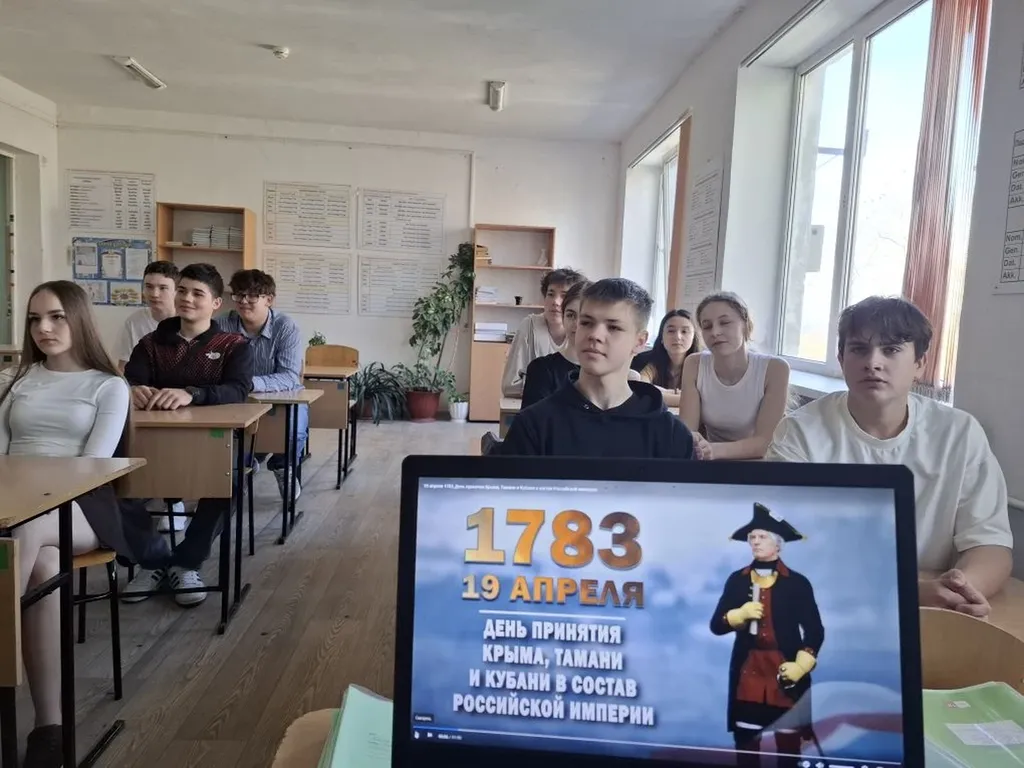 В нашей школе прошли тематические классные часы, посвящённые Дню принятия Крыма, Тамани и Кубани в состав Российской империи. Эта памятная дата отмечается ежегодно 19 апреля и связана с подписанием в 1783 году императрицей Екатериной II манифеста о вхождении этих земель в состав России.