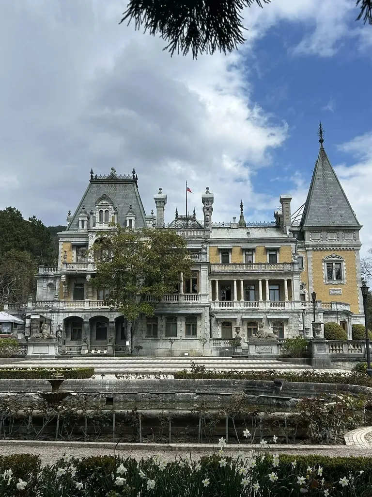 Первым пунктом нашего маршрута стал Массандровский дворец — архитектурный памятник XIX века, окруженный тенистым парком. Юные экскурсанты с большим интересом слушали рассказ об истории строительства замка, о его знаменитых владельцах из императорской семьи.