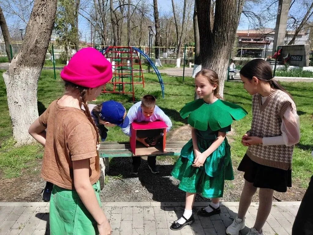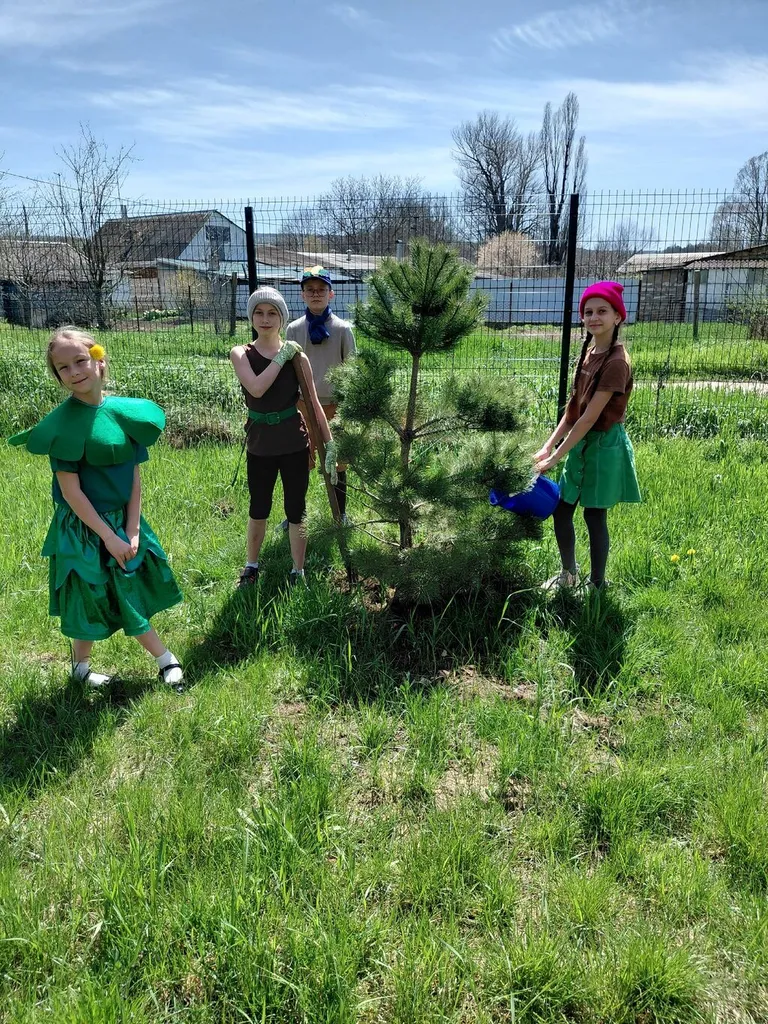 Ребята вместе с героями Эколятами высаживали цветы на школьной клумбе