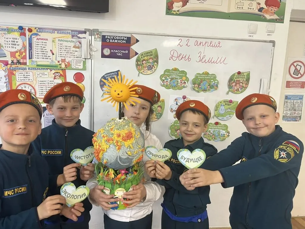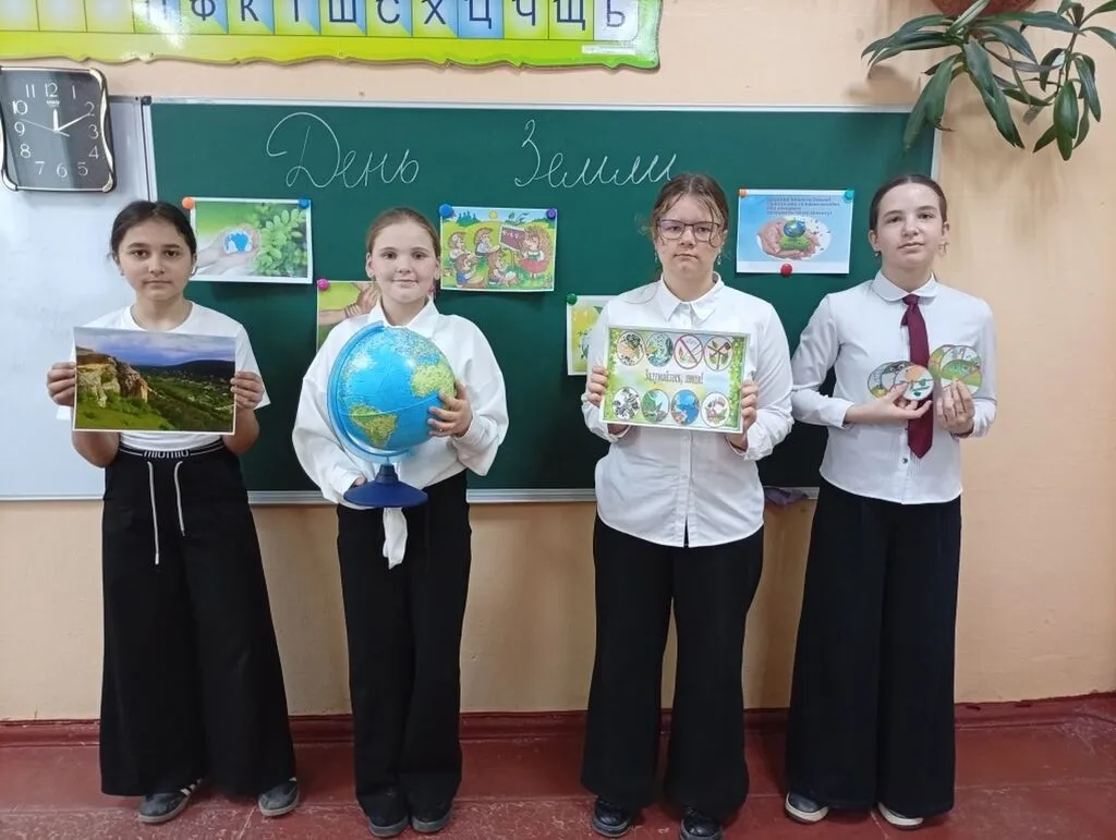 Для старшеклассников подготовили более серьёзную программу. Классный час «День Земли» провели с использованием материалов, предоставленных ФГБУ «Российский детско-юношеский центр» и обществом «Знание».